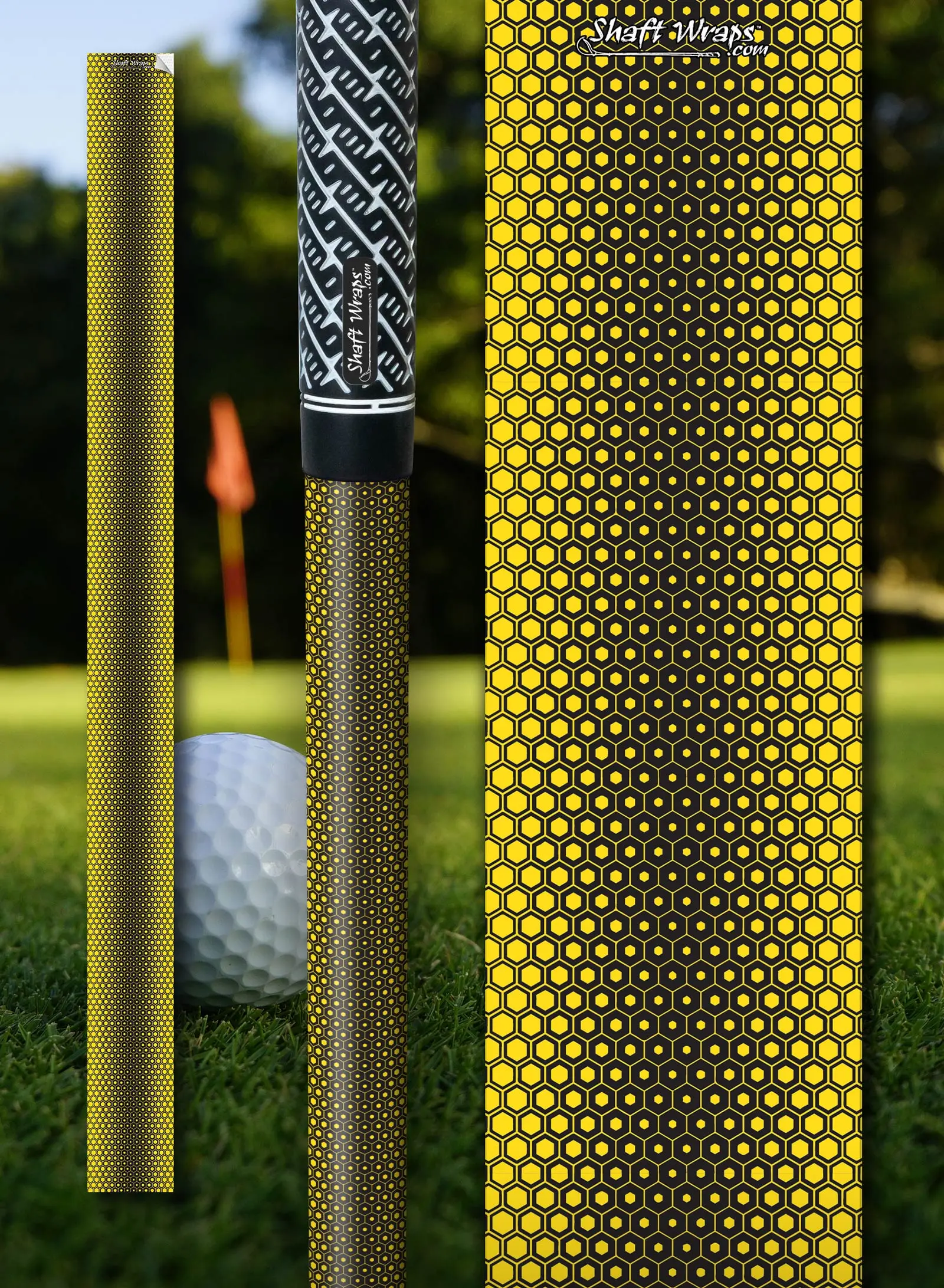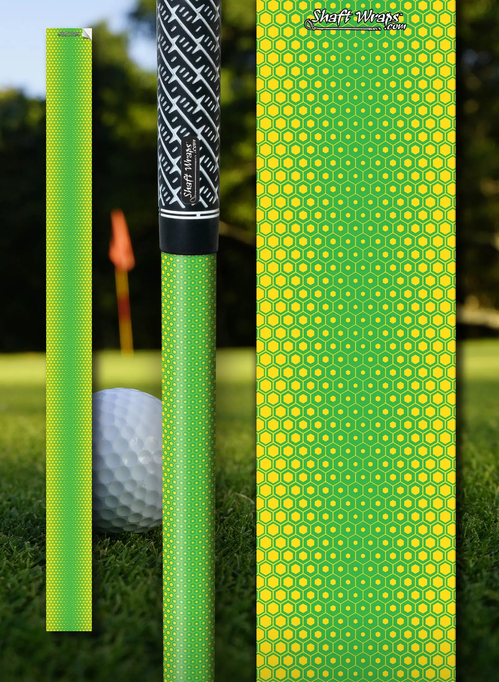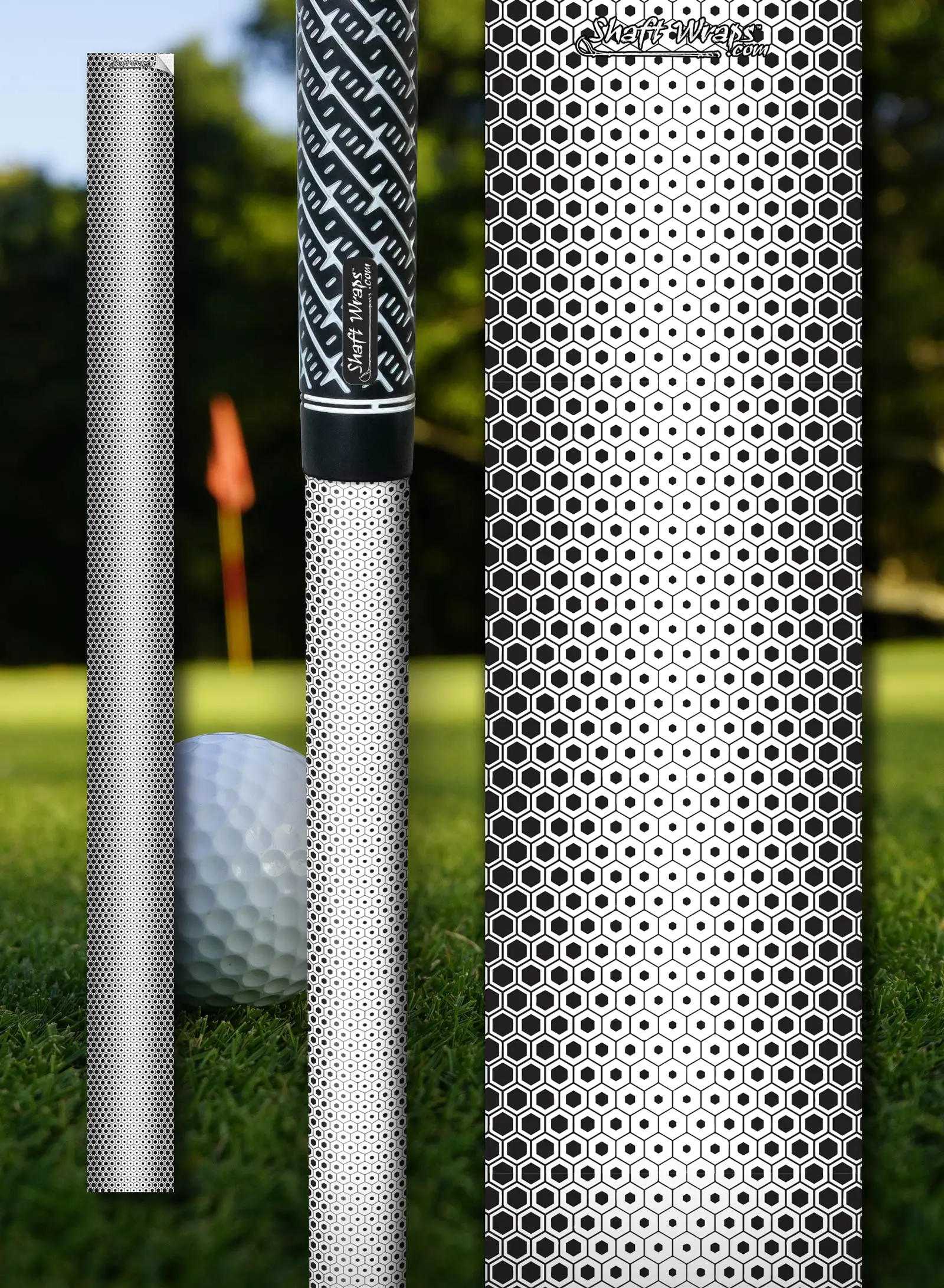 Our Honeycomb Pattern Shaft Wrap is a custom golf club shaft skin that can be applied in seconds to your own golf shafts.